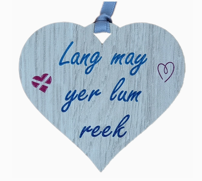 Spice up your space with our vibrant Hanging Heart Decoration featuring colourful designs and witty Scottish phrases!